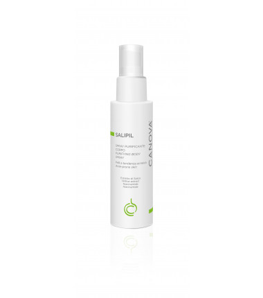 SALIPIL Purifying spray is a lotion specifically formulated to help to prevent and keep under control the main symptoms of acne-prone skin and to treat folliculitis. Salipil Spray is recommended for use on larger body areas, such as the back, the chest and the shoulders. It is based on a functional 2% concentration of Salicylic Acid, which is exfoliating and keratolytic. The product is also comedolytic and anti-inflammatory and is particularly useful as a complementary treatment in the therapy of mild to moderate acne.